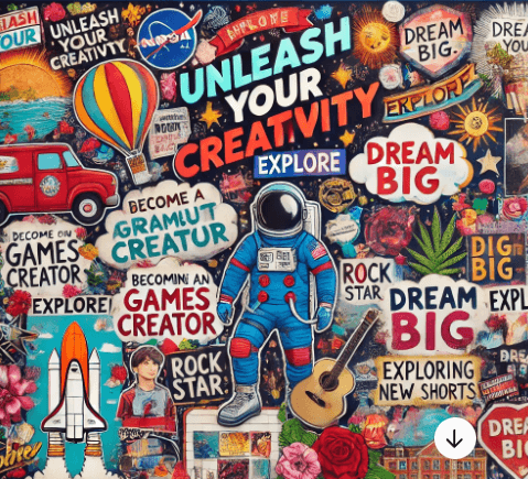 Unleash your creativity and dreams onto colourful vision boards filled with inspiring images, words and drawings to showcase your goals and aspirations. Whether it’s becoming an astronaut, games creator, rock star or Instagrammer, or even exploring a new hobby, it’s a fun and meaningful activity that encourages self-expression and big dreaming!