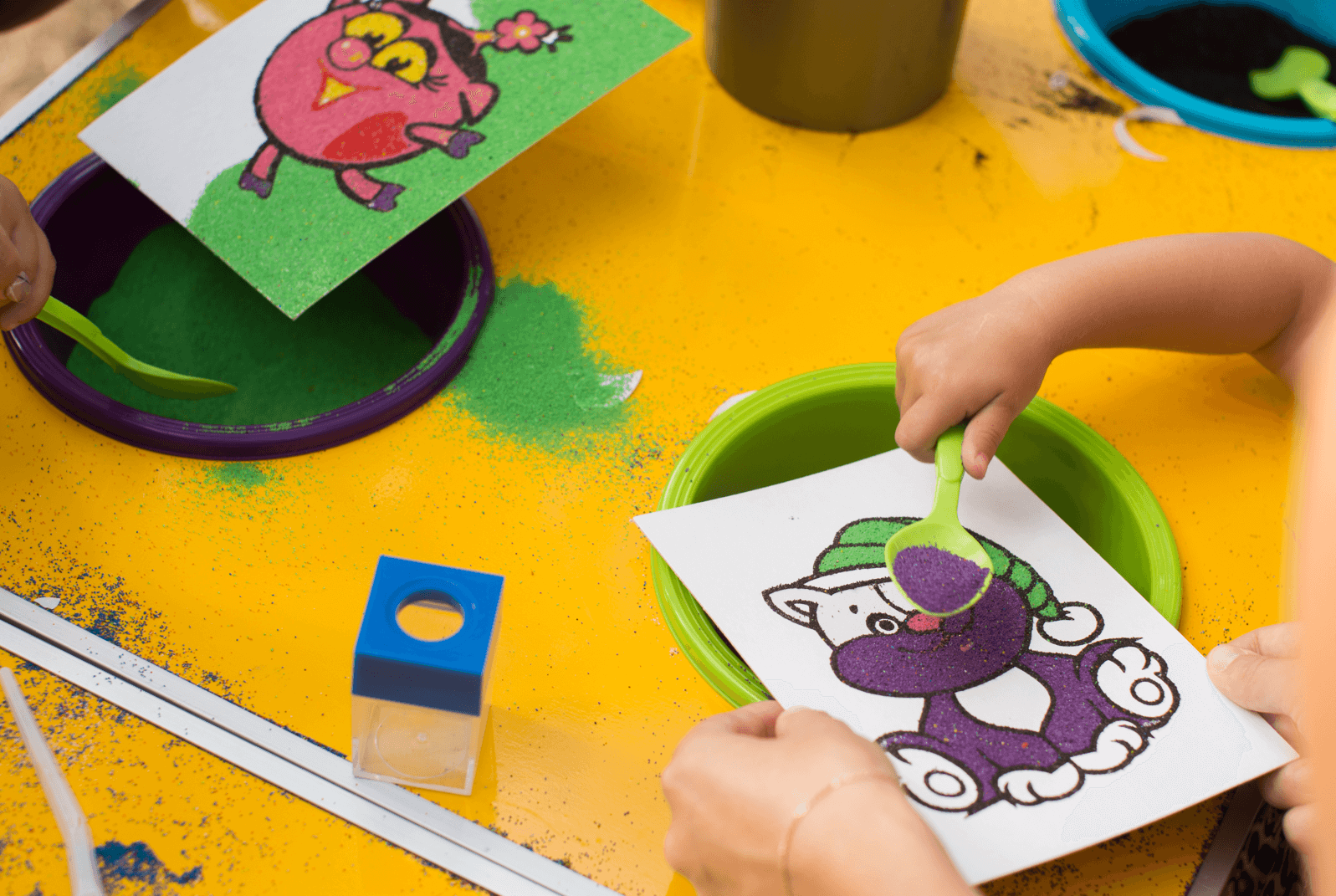 Experience different ways to get crafty and have fun with sand! kinetic sand, sand art pictures or bottles, or build a sand city!